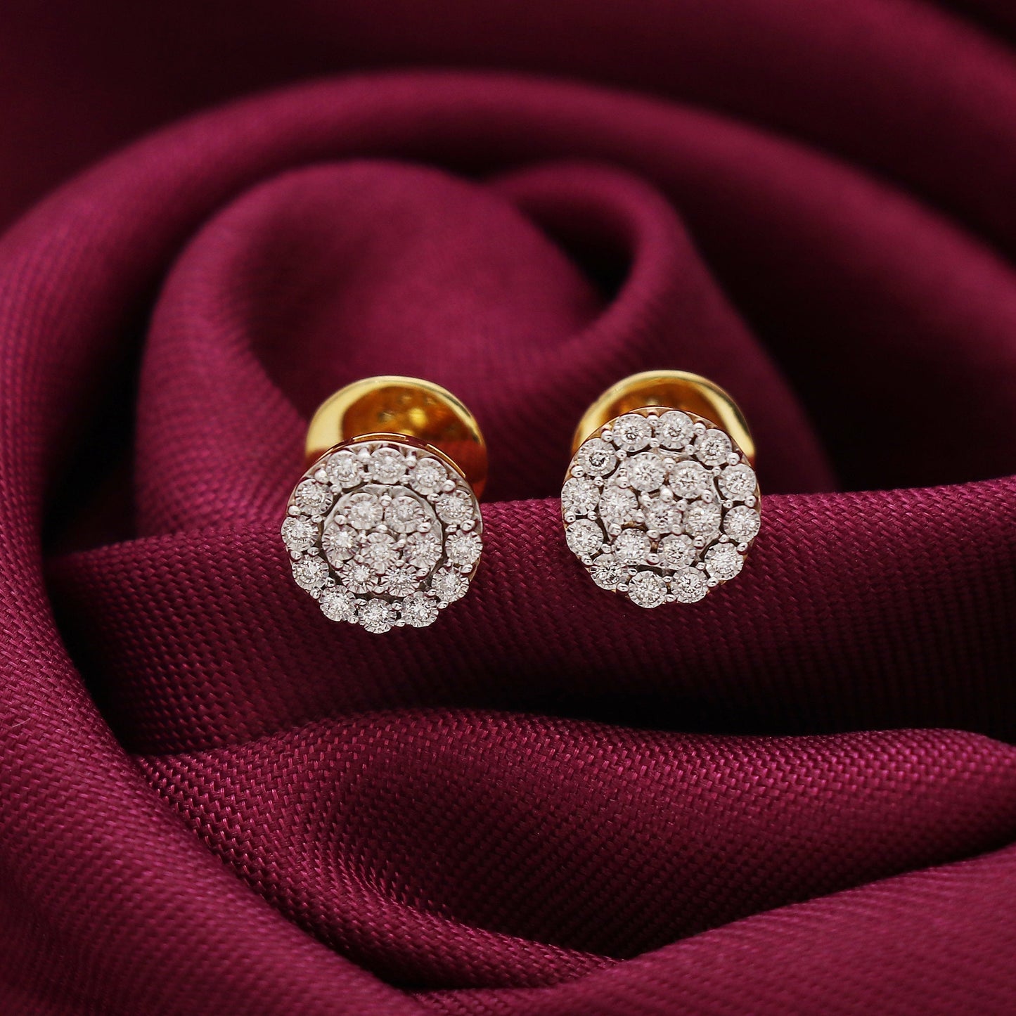 Real Diamond 22k Gold Earrings, Round Stud Earrings, Not simulated or lab diamond, A1511