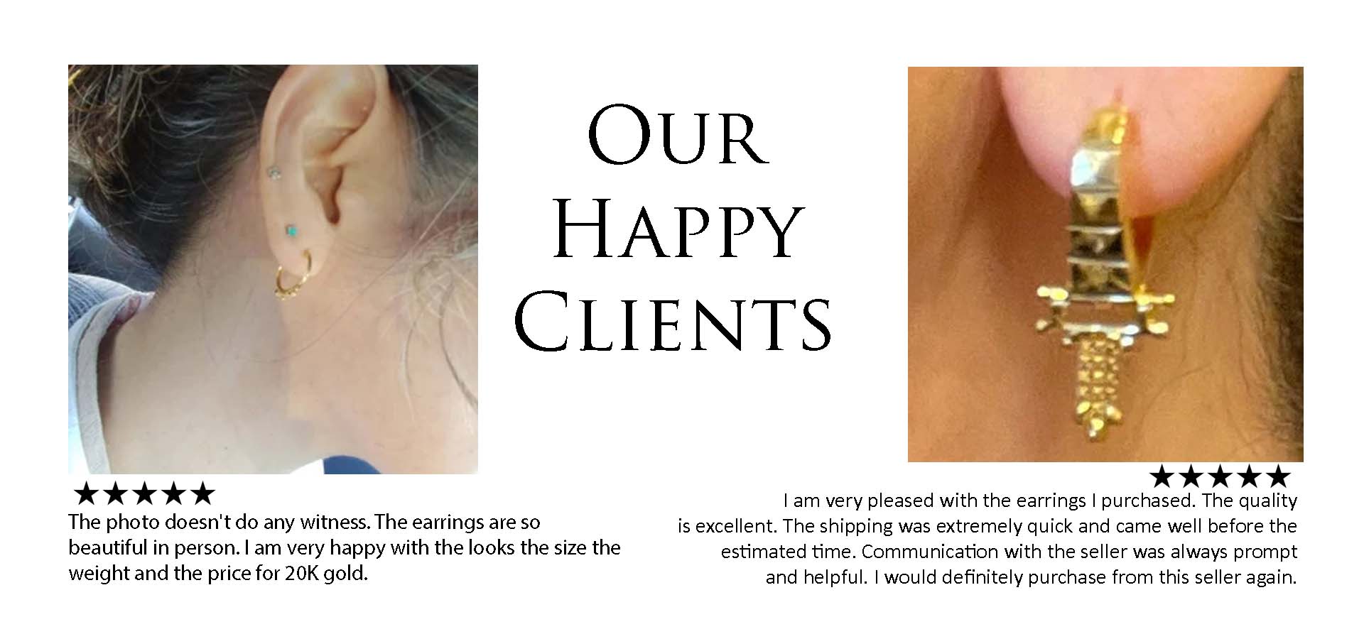 We guarantee the authenticity of our gold jewelry with stamps that indicate the purity of the metal (e.g., 14k, 18k, 22k). Additionally, all our products are tested and certified to ensure they meet industry standards.