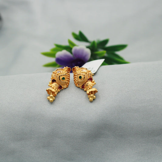 22k Gold Earrings Dangle Small Tiny Bells Party Wear Handmade Indian 22kt Gold Dangle screw back Earrings Jewelry for Gift, K5153