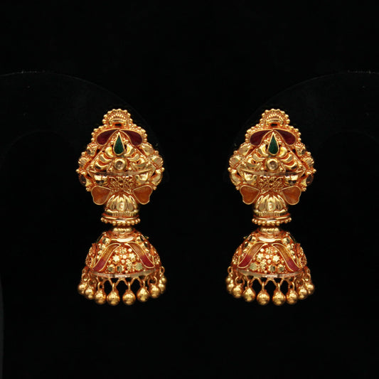 22k Yellow Gold Earrings Meenakari Jhumka Earring Indian Jewelry, Vintage Antique Design Earrings Rajasthani Jewelry