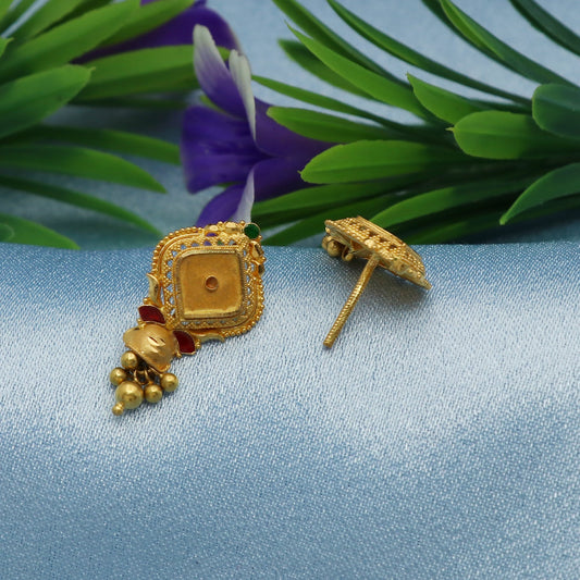 Beautiful 22k Yellow Gold Stud Earrings, Indian Handmade gold earrings for women, Party Wear Ethnic Earrings for Gift
