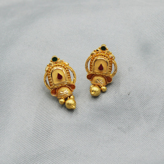 beads 22k Yellow Gold stud earrings Earrings , small gold studs, Handmade Yellow gold earrings for women, dainty Indian gold earrings