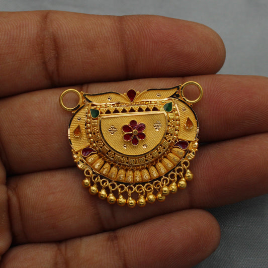 Carved 22k Gold Pendant Necklace Jewelry, Indian Gold Handmade wedding bridal jewelry K1689