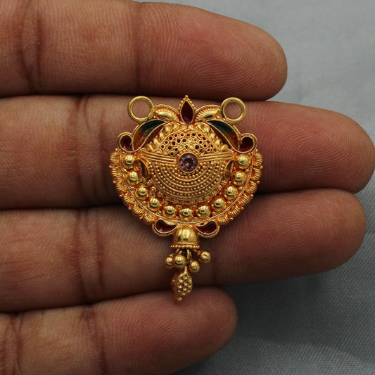 handmade 22k Yellow Gold Meena Pendant Necklace Jewelry, vintage Pure Traditional modern mix design indian style mangalsutra necklace