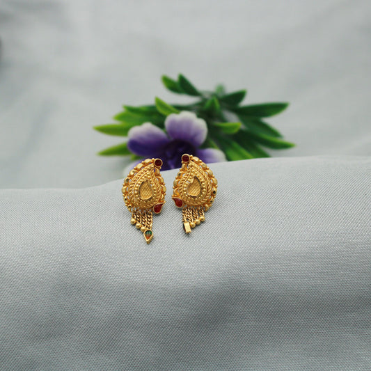 Pure 22k Gold Earrings handmade jewelry, Traditional Indian Meena Earrings, vintage design EARRINGS
