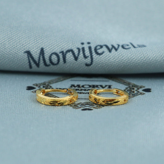 20k Yellow Gold Hoop Bali Earrings , Handmade Yellow gold earrings for women, Diamond Cut Hoops, dainty indian gold earrings for teens