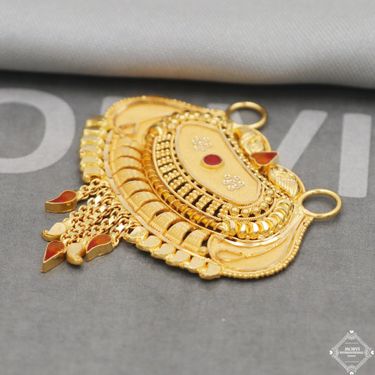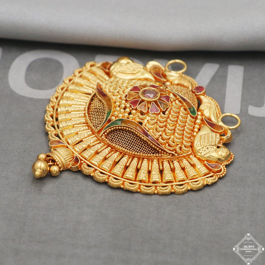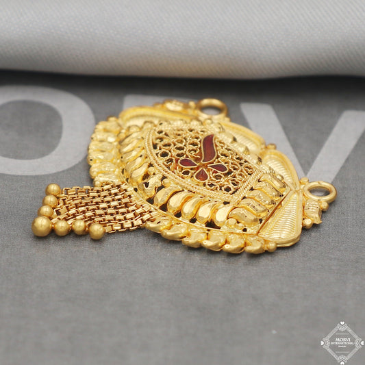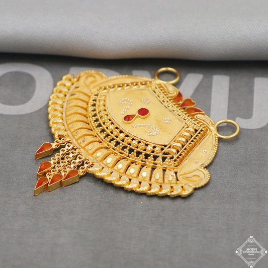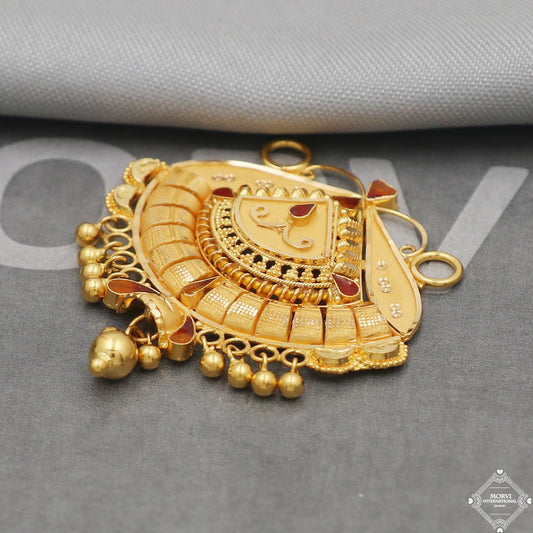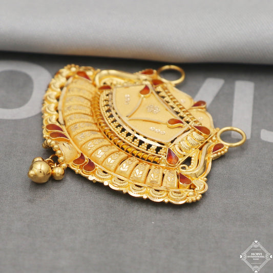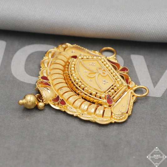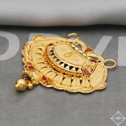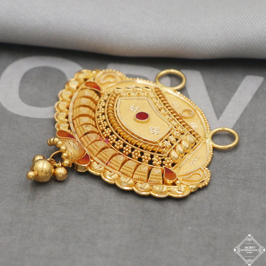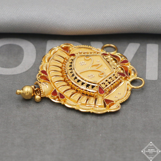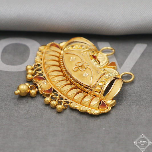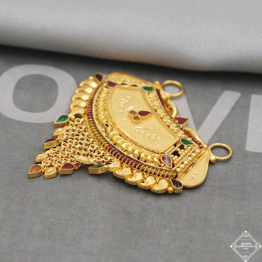 22k Yellow Gold Pendant Necklace Handmade Indian Mangalsutra Handmade Vintage Antique Design Jewelry, K5063