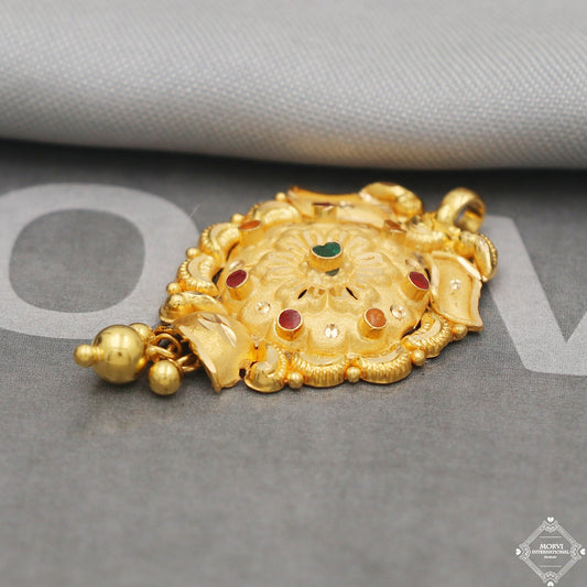 22k Yellow Gold Pendant Necklace Handmade Indian Mangalsutra Handmade Vintage Antique Design Jewelry, K5071