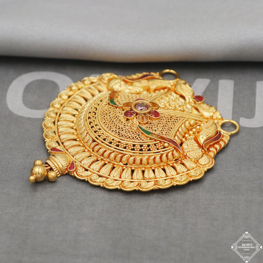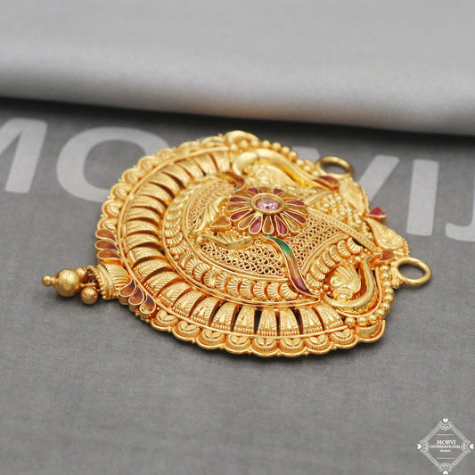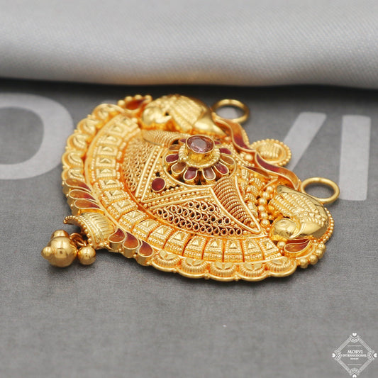 22k Yellow Gold Pendant Necklace Handmade Indian Mangalsutra Handmade Vintage Antique Design Jewelry, K5072