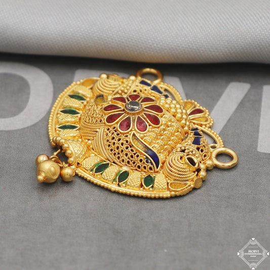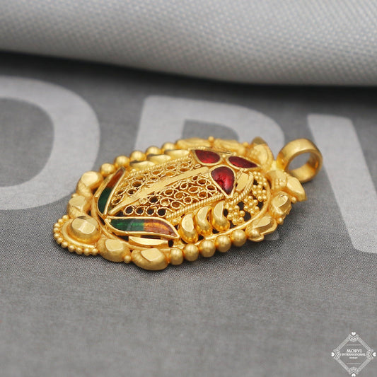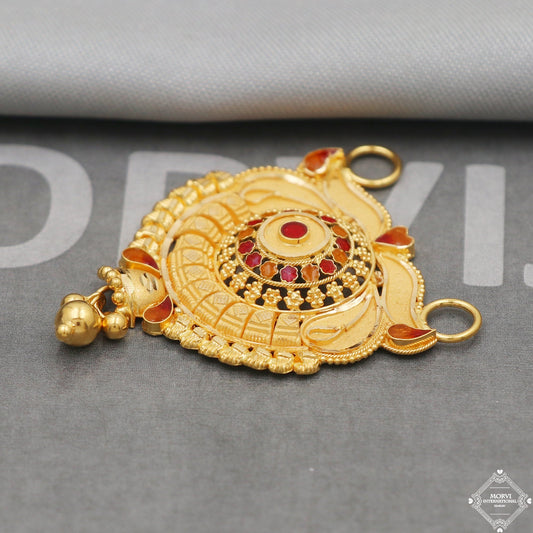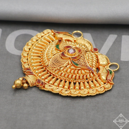22k Yellow Gold Pendant Necklace Handmade Indian Mangalsutra Handmade Vintage Antique Design Jewelry, K5069