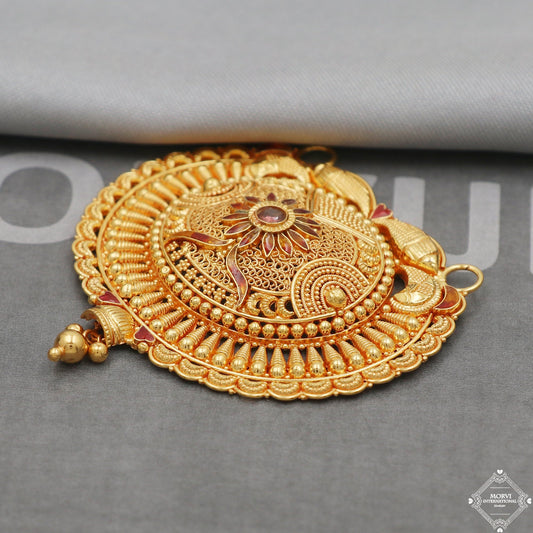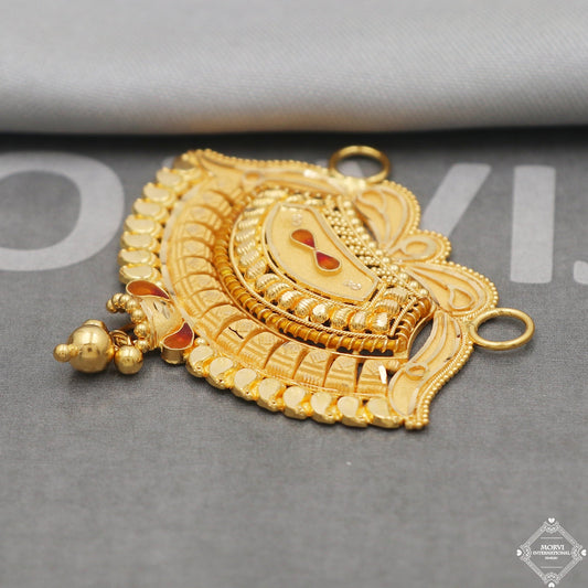 22k Yellow Gold Pendant Necklace Handmade Indian Mangalsutra Handmade Vintage Antique Design Jewelry, K5064