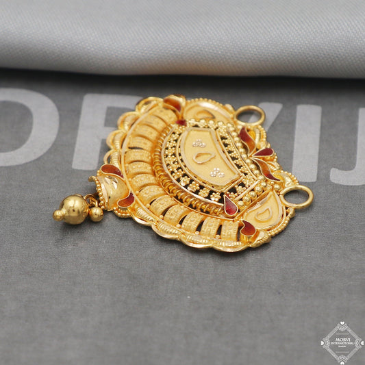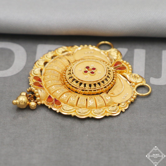 22k Yellow Gold Pendant Necklace Handmade Indian Mangalsutra Handmade Vintage Antique Design Jewelry, K5065