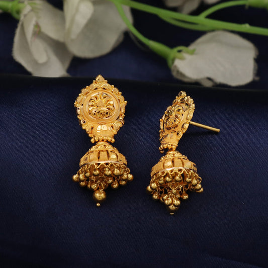 bell - 22k Yellow Gold Stud Earrings , Handmade Yellow gold earrings for women, vintage antique design indian gold earrings jewelry