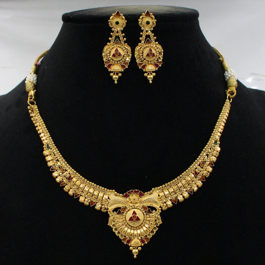 22k Yellow Gold women Necklace Earrings Set , handmade Indian Gold Jewelry Set, vintage antique design jewelry set