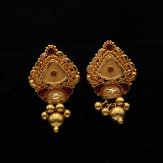 22kt 22k Yellow Gold Earrings , 22k gold stud, Handmade Yellow gold earrings for women, vintage antique design indian gold earrings jewelry