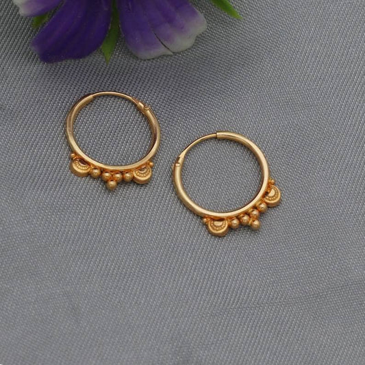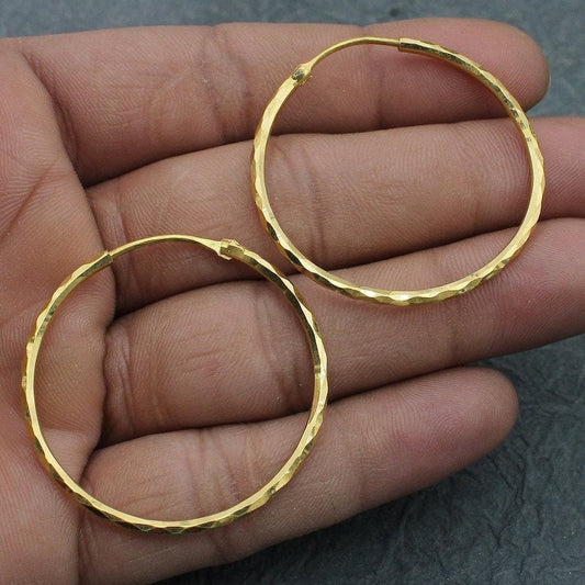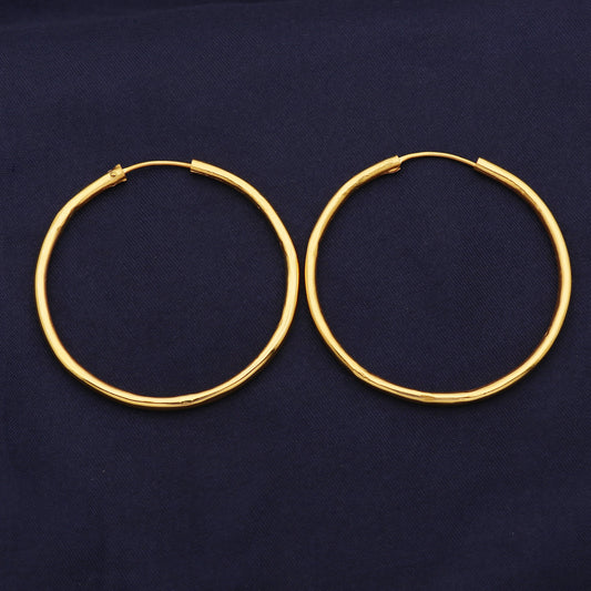 big 22k Yellow Gold Hoop Bali Earrings , Handmade Yellow gold earrings for women, Valentine Day gift, plaint design indian gold earrings