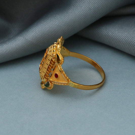 Big Black Onyx Zircon 22k Gold Ring, Big Yellow Gold Ring Jewelry, Indian Pure Gold Jewelry Ring for Gift