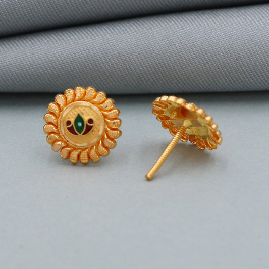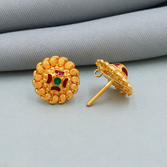 22k Yellow Gold Stud Earrings, Handmade Yellow gold earrings for women, vintage antique design indian gold earrings jewelry