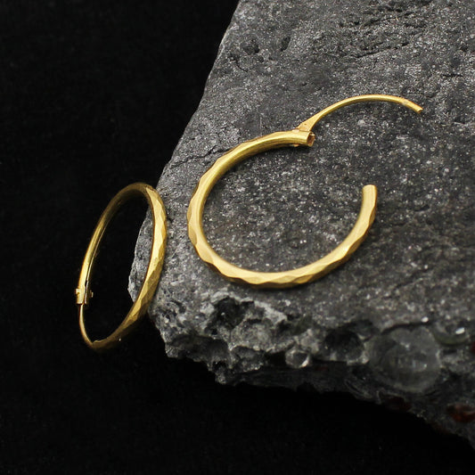20k Yellow Gold Hoop Bali Earrings , Handmade big Yellow gold earrings for women, Valentine Day gift, hammered design indian gold earrings