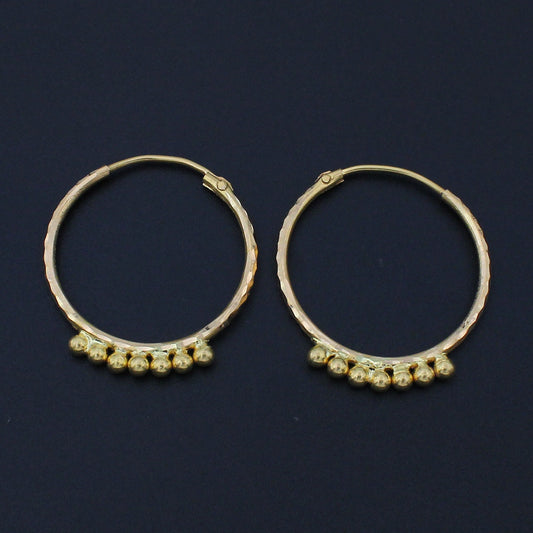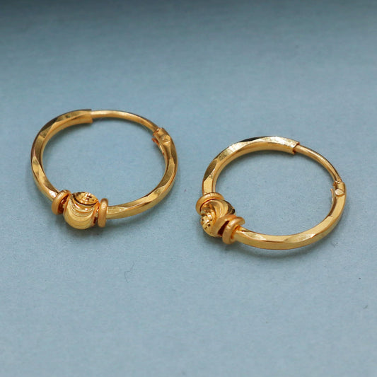 20k Yellow Gold Hoop Bali Earrings Handmade Yellow gold earrings for women, Valentine Day gift, beads indian gold earrings