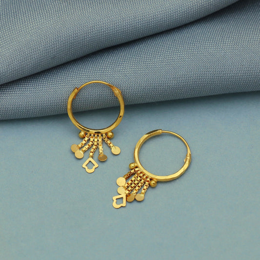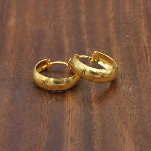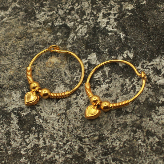 20k Yellow Gold Hoop Bali Earrings, Handmade Yellow gold earrings for women, Valentine Day gift, simple design indian gold earrings