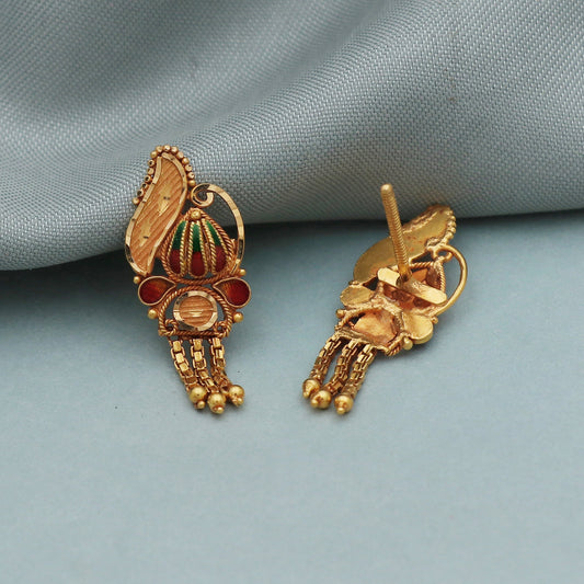 22k Yellow Gold Earrings, Handmade Yellow gold enamel work earrings 20kt tops for women, Valentine Day gift, dainty indian gold earrings