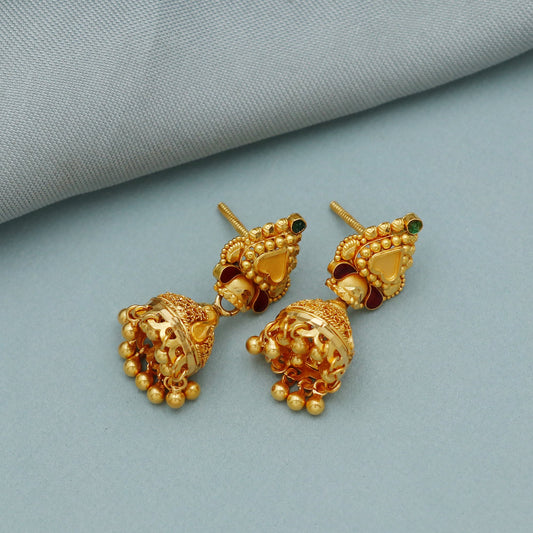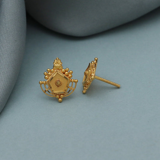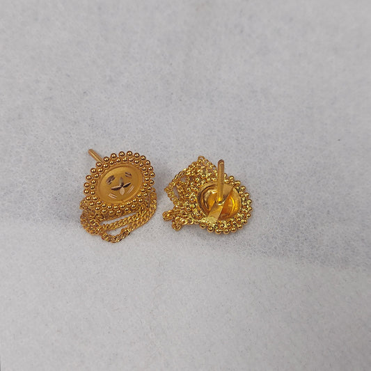 22k Gold Stud Jhumki Earrings , Handmade Yellow gold earrings for women, vintage antique design indian gold earrings jewelry