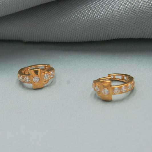 20k Yellow Gold Hoop Bali Earrings Handmade Yellow gold earrings for women, Valentine Day gift, zircon indian gold earrings