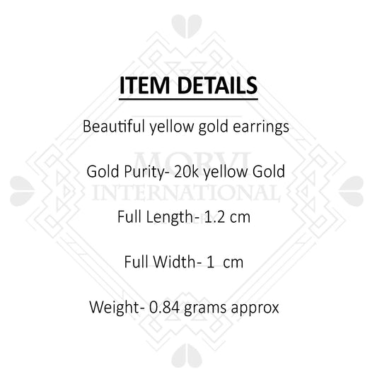 20k yellow gold earrings stud women indian handmade jewelry, K3570