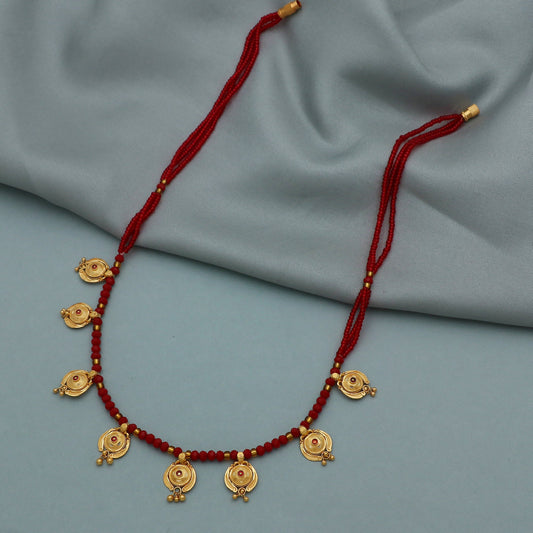 20k gold mala mangalsutra necklace with small amulet and red beads, Indian Wife Jewelry gift, 20k gold pendant