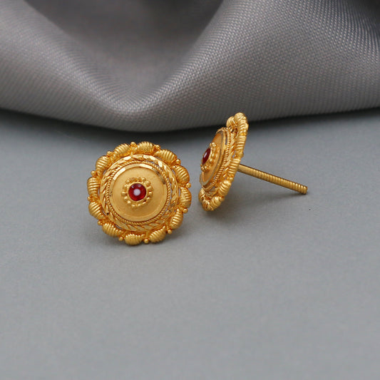 18k Yellow Gold stud earrings gold Earrings , round , Handmade Yellow gold earrings for women, Christmas gift, Indian gold tops earrings