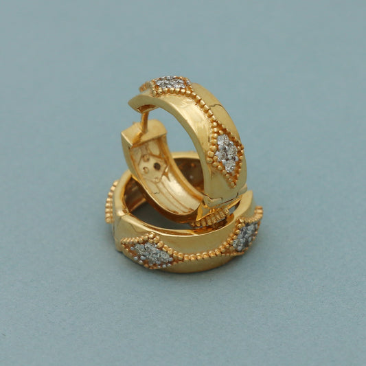 18k Yellow Gold diamond thick Hoop Earrings Huggies, Handmade Yellow gold hoop earrings, Diamond Earrings, indian gold earrings