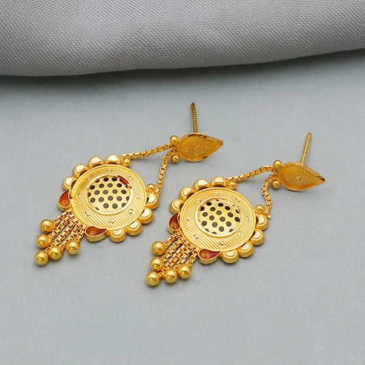 18k yellow gold dangle Long earrings jewelry with Small chandelier Studded earrings , Handmade Jewelry made india Christmas Gifts