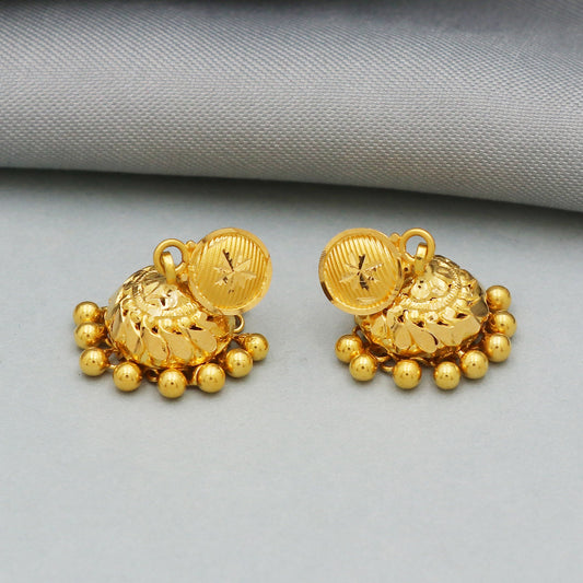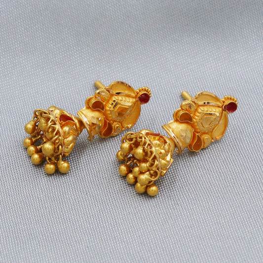 18k Yellow Gold earrings dangle Earrings 18kt jhumki jhimiki beads, Handmade Yellow gold earrings for women, Christmas gift, asian gold