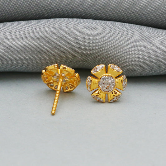 18k Yellow Gold earrings Bali stud Earrings 18kt, zircon stud, Handmade Yellow gold earrings for women, Christmas gift, dainty Indian