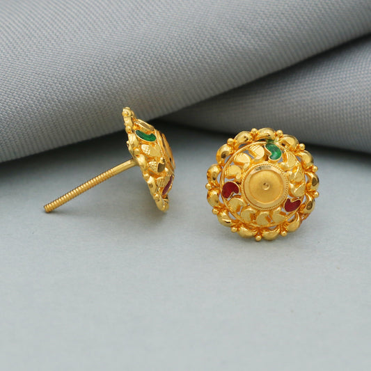 22k 22kt gold studs earrings jewelry for gift, gold round screw back minimalist earring
