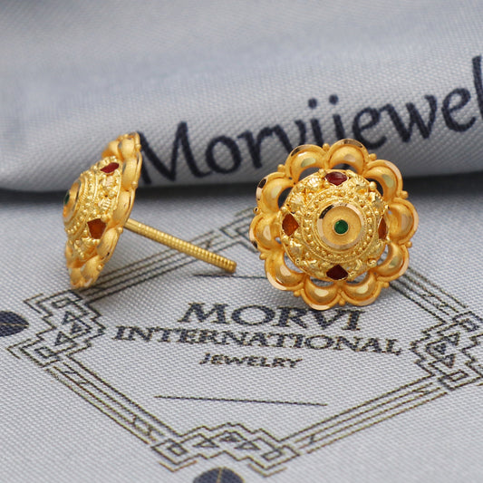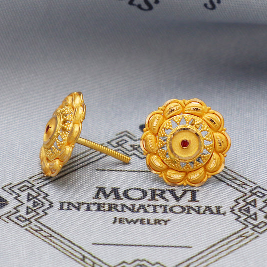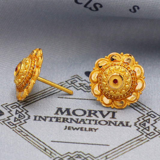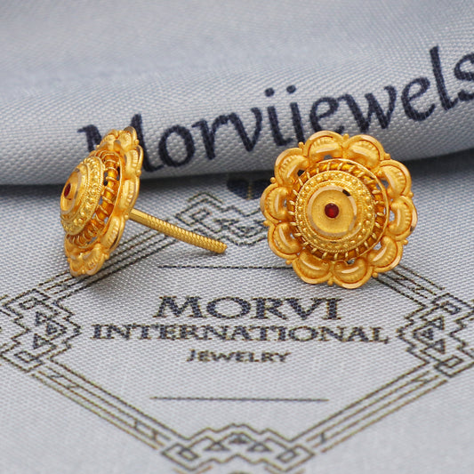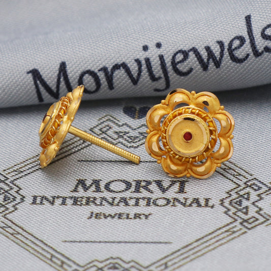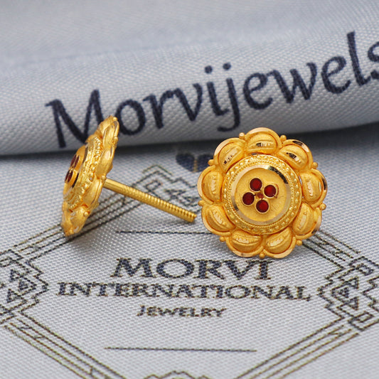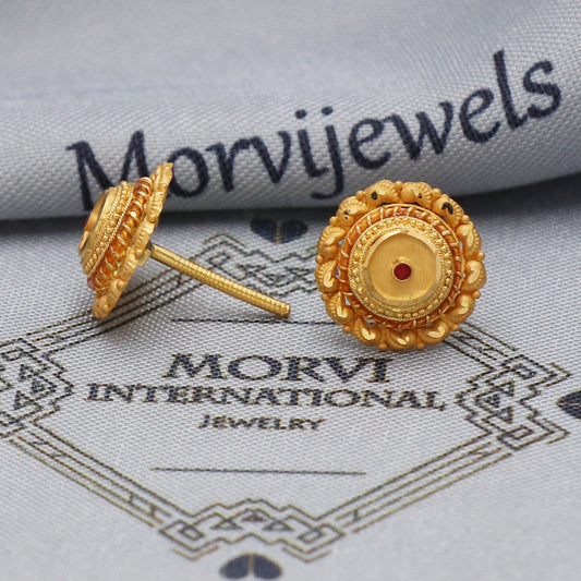 22k 22kt Yellow Gold Studs Earrings Jewelry for gift, Gold Round Screw Back Minimalist Indian Antique Vintage Earrings for Wedding, K5440