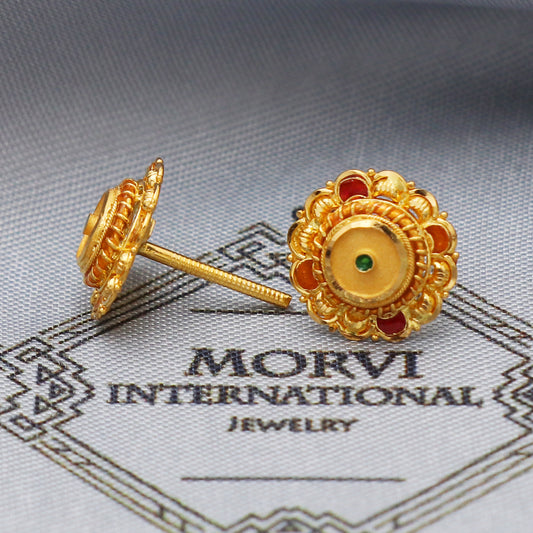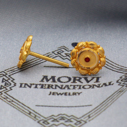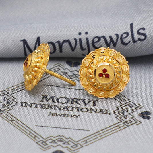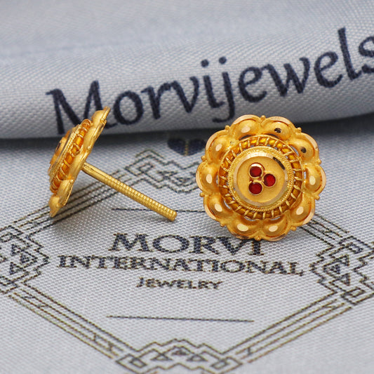 22k 22kt Yellow Gold Studs Earrings Jewelry for gift, Gold Round Screw Back Minimalist Indian Antique Vintage Earrings for Wedding, K5437