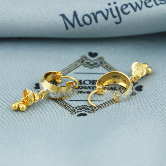 Pure 22k Yellow Gold Hoop Bali Earrings with bells, Handmade Yellow gold Small earrings for women, dainty Indian gold earrings gift, MJ0104