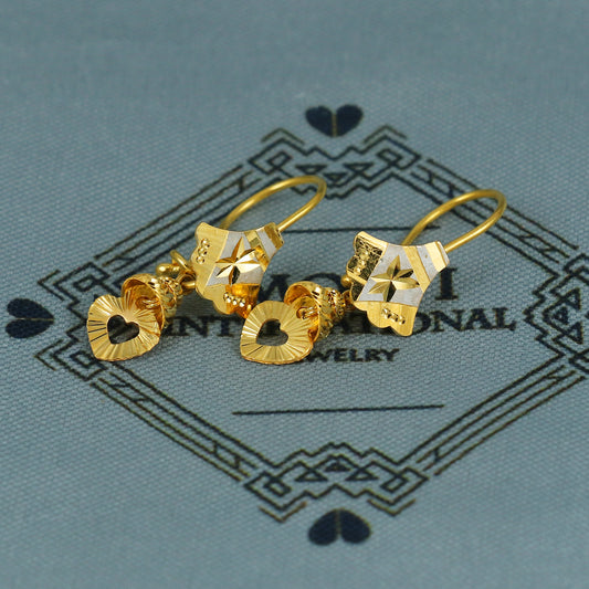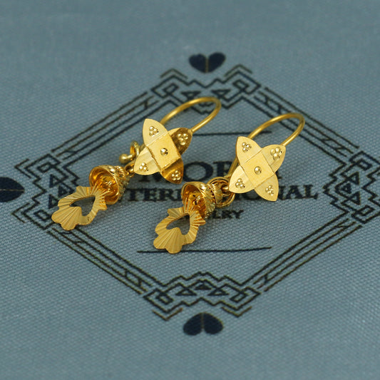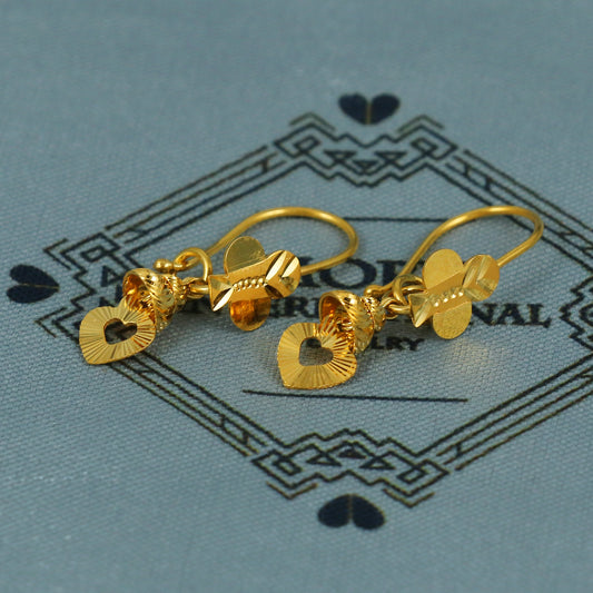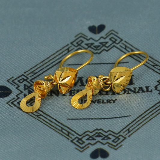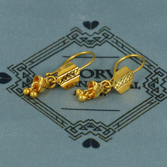 22k Gold Earrings Engraved Ear wire Hook Dangle Earrings , Small Dangling 22kt Earrings, Indian Gold Earrings, Party Wear Earrings, MJ0107