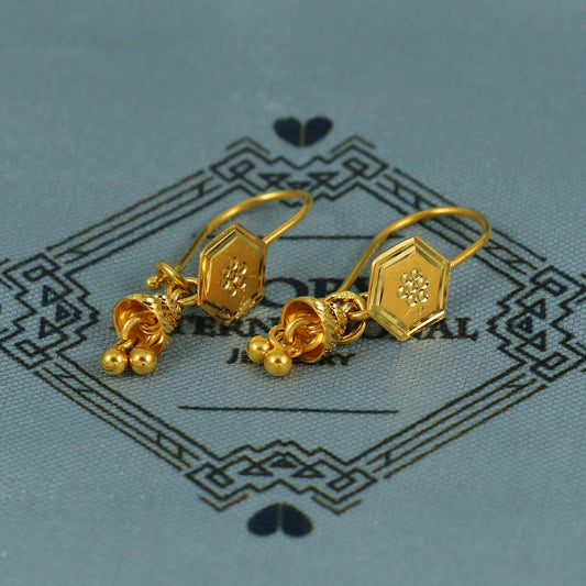 22k Gold Earrings Engraved Ear wire Hook Dangle Earrings , Small Dangling 22kt Earrings, Indian Gold Earrings, Party Wear Earrings, MJ0111