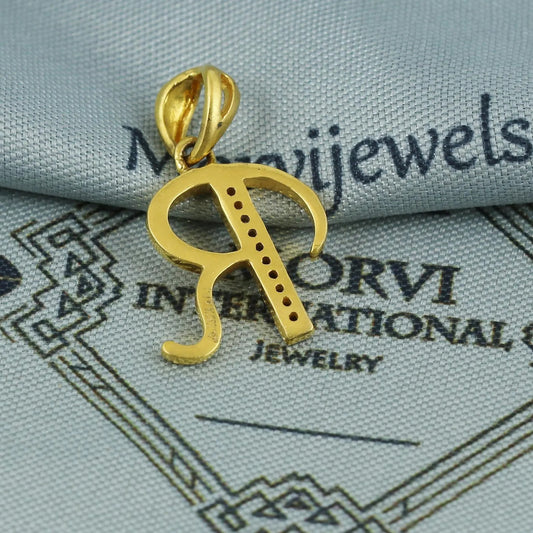 R Alphabet Initials 22k Gold Pendant Locket Indian 22kt Jewelry, R "R" Letter Alphabet in Pure 22k Yellow Gold Pendant, Handmade Yellow Gold Jewelry, Hand Crafted Custom Made, MJ0116