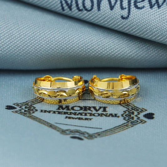 22k Gold Hoop Earrings Two Tone Indian 22kt Jewelry Exclusive Authentic BIS Hallmarked Stamped "22k916" Jewelry, MJ0056