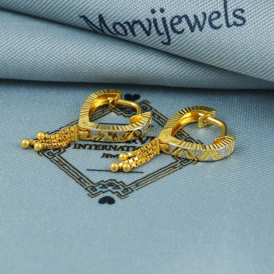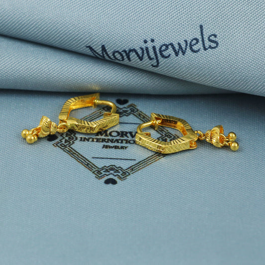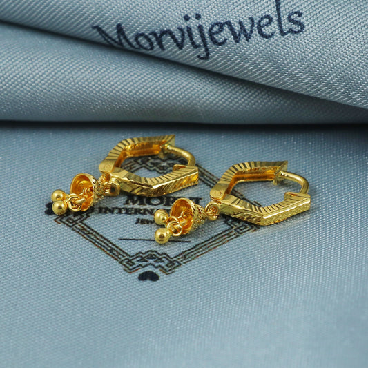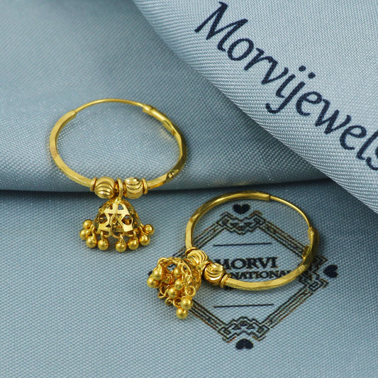 22k Yellow Gold Hoop Jhumki Dangling Earring Jhumka, Handmade Indian Gold Jewelry for Women, MJ0076