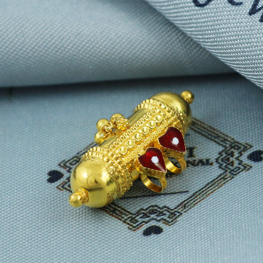 Vintage antique design handmade 22 karat yellow gold amulet pendant with fabulous hanging bells excellent women's girl's jewelry from india