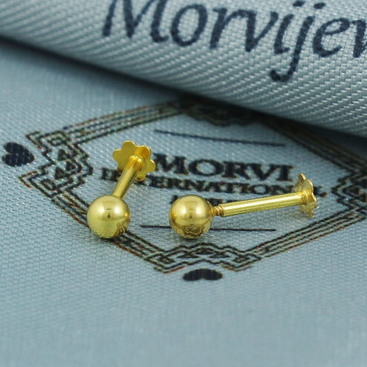18k Gold Ball Studs – Lightweight 0.23g, 5 and 3mm Ball, 1cm Length, Minimalist Indian Earrings for Everyday Wear, MJ0082/83