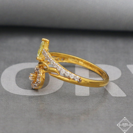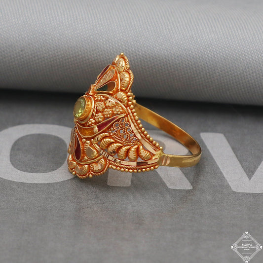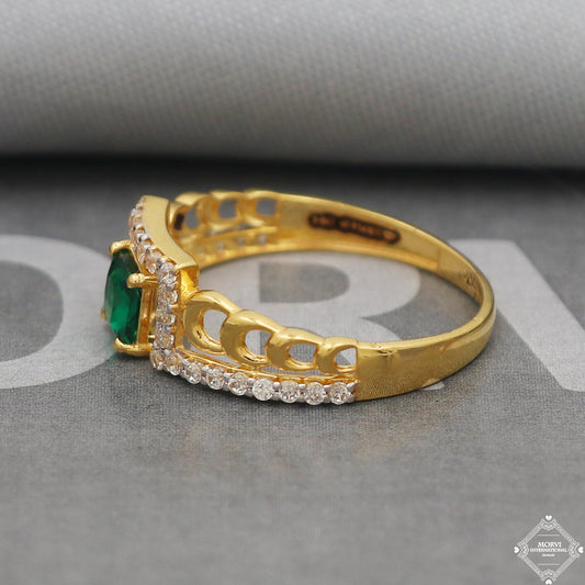 Green Stone Zircons 22k Yellow Gold Ring Jewelry, Handmade Indian Stone Ring, Zircon Gold Ring, All Size, K5030