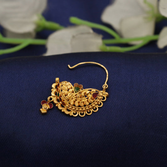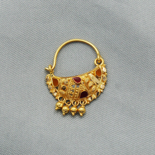 Pure Gold nath indian nosepin 22k gold with enamel work, wedding jewelry
