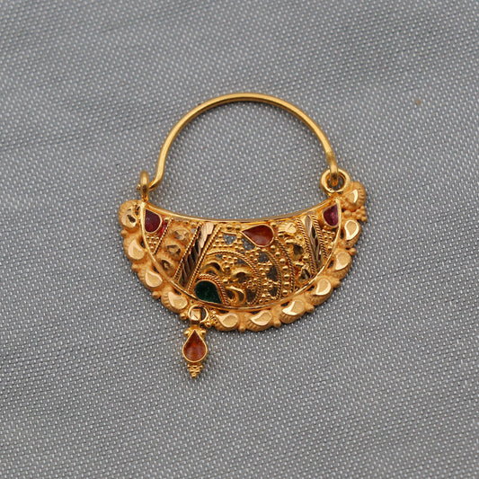 22kt Gold Nose Pin Nosering Jewelry Traditional Indian Nath Bridal Jewelry