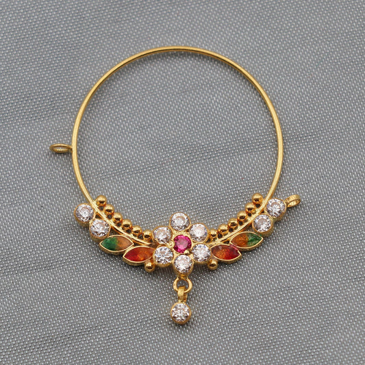 Zircon 22k Yellow Gold Nath Nosepin women indian Jewelry, K2516